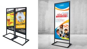 Standee Chân Sắt + Tấm Fomat 2 Mặt – Giải Pháp Trưng Bày Chuyên Nghiệp & Tối Ưu Không Gian