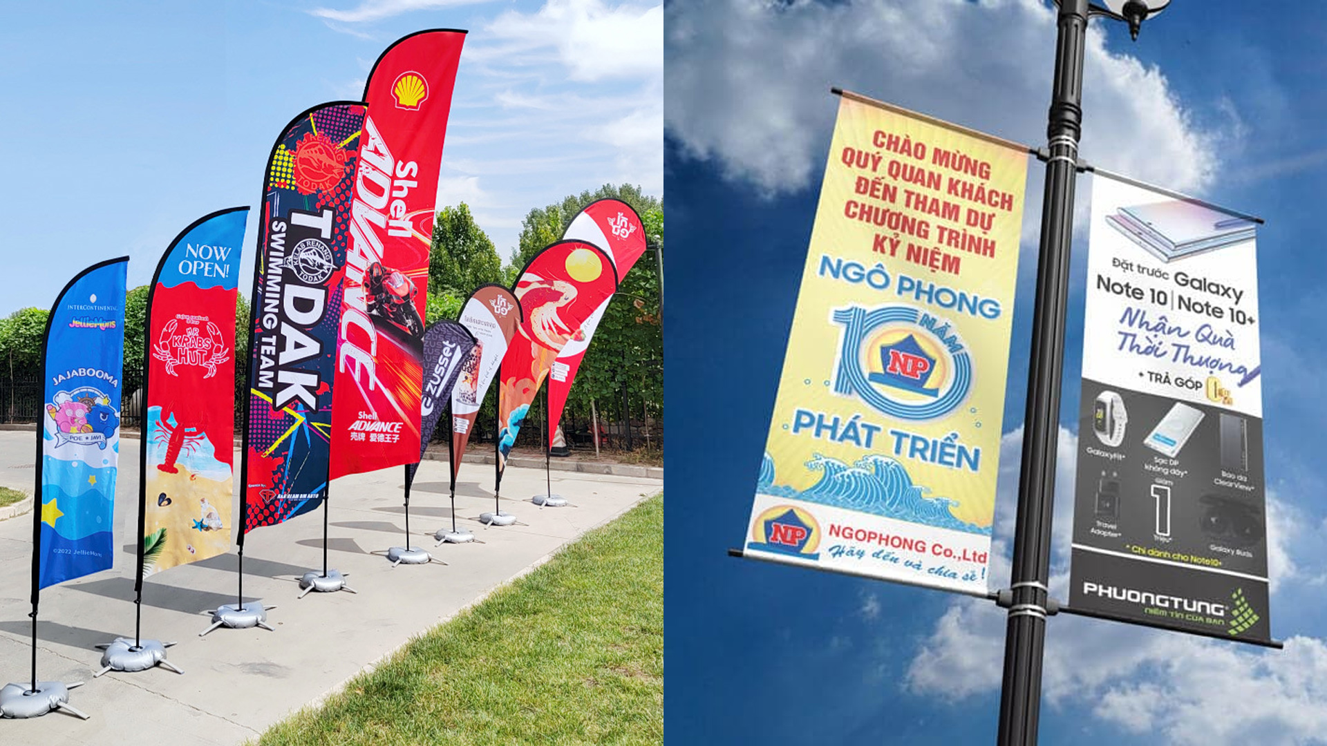 2. Phướn – Banner dọc treo trụ đèn, treo hàng rào