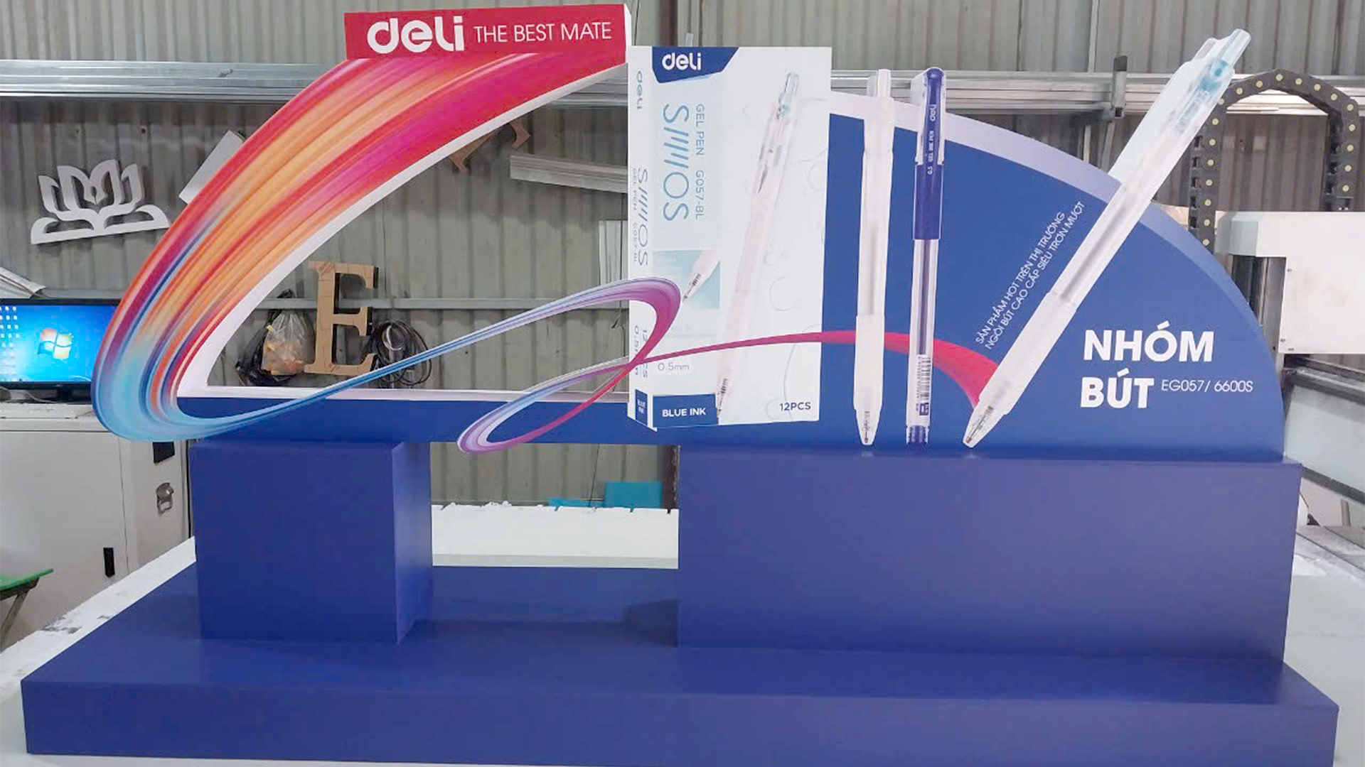 Cung cấp backdrop booth, quầy lễ tân, tủ mica trưng bày, mô hình sản phẩm